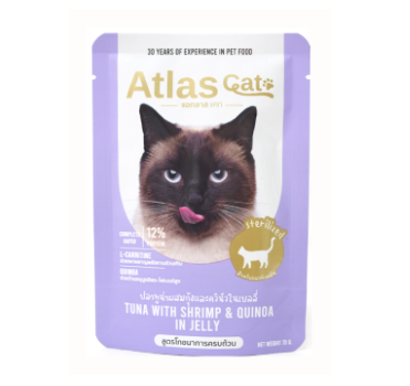Atlas Cat Sterilized Tuna Mixed with Shrimp and Quinoa in Jelly – แอทลาส แคท สำหรับแมวทำหมัน ปลาทูน่าผสมกุ้งและควินัวในเยลลี่ 70g