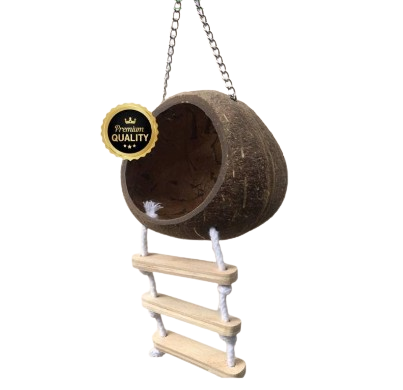บ้านกะลา 8# – ไม่เจาะรูระบาย มีสะพานเชือก สายห้อยโซ่ Coconut Shell House for Small Pets – บ้านกะลามะพร้าวสำหรับสัตว์เลี้ยงขนาดเล็ก