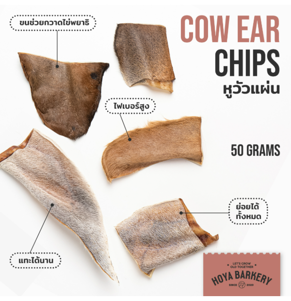 หูวัวอบแห้งชนิดแผ่นให้ความสนุกเพลิดเพลินกับน้องหมาได้ทุกเพศทุกวัยทุกสายพันธุ์ เป็นส่วนบางช่วงปลายหูเหมาะสำหรับน้องที่ชอบแทะระดับปานกลาง ไม่หนักมาก ได้ออกกำลังกราม ปลอดภัย ไม่เพิ่มน้ำหนัก หูวัวมีแร่ธาตุแมงกานีซที่ช่วยเสริมระบบประสาทและฮอร์โมน และยังมีขนที่ช่วยกวาดไข่พยาธิในท้องน้องได้อีกด้วย