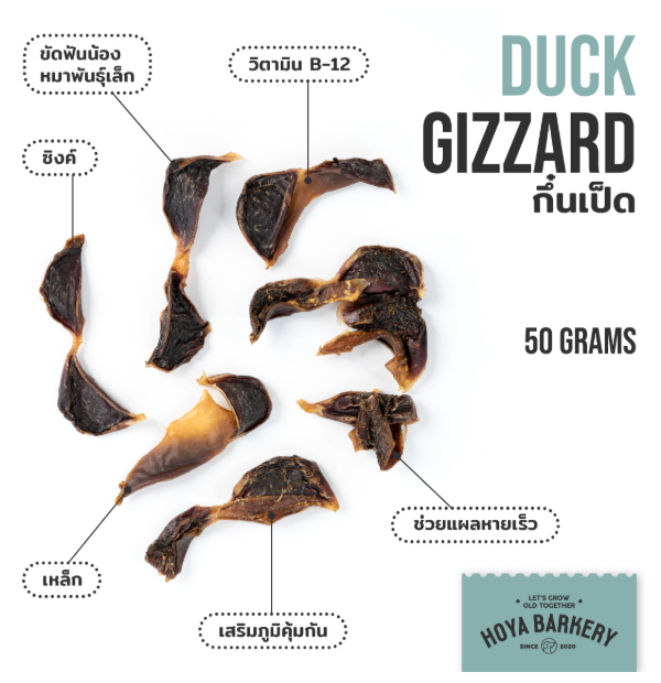 Hoya Barkery Dehydrated Duck Gizzardt – กึ๋นเป็ดอบแห้ง 50g