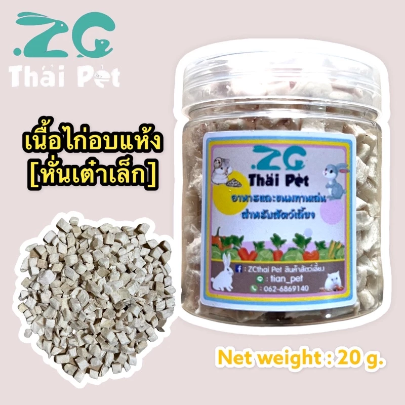 ZC Thai Pet Chicken Freeze Dried – เนื้อไก่อบแห้ง หั่นเต๋าเล็ก 20g