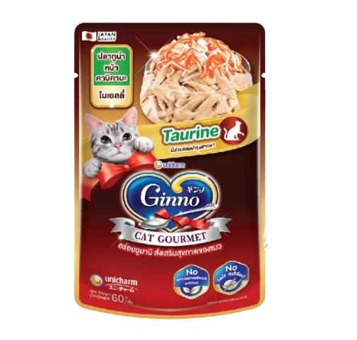 Ginno Cat Gourmet Taurine Pouch Wet Cat Food – อาหารแมวเปียก รสปลาทูน่าหน้าคานิคามะในเยลลี่ บำรุงสุขภาพตา 60g