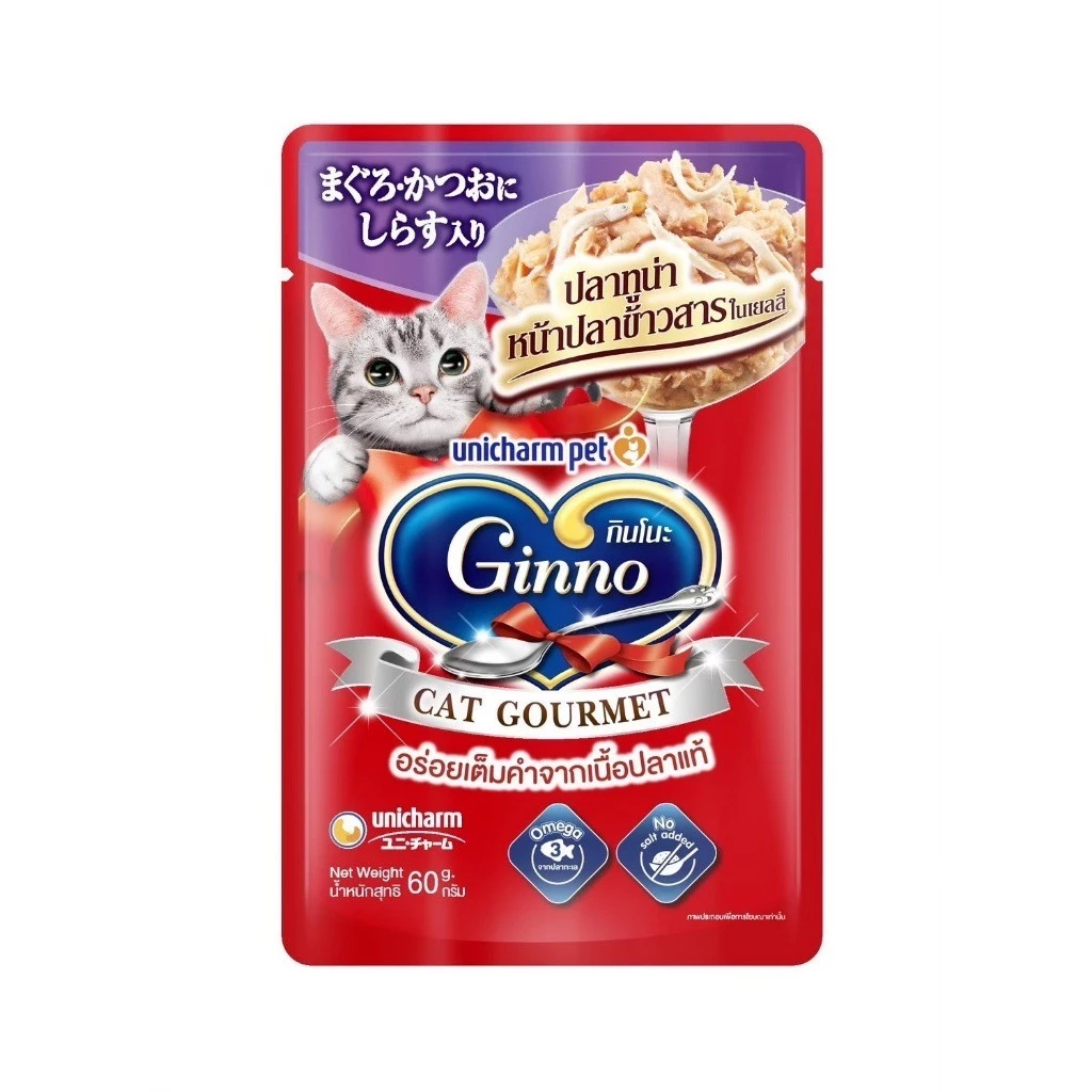 Ginno Cat Gourmet Pouch Wet Cat Food – อาหารแมวเปียก รสปลาทูน่าหน้าปลาข้าวสารในเยลลี่ 60g