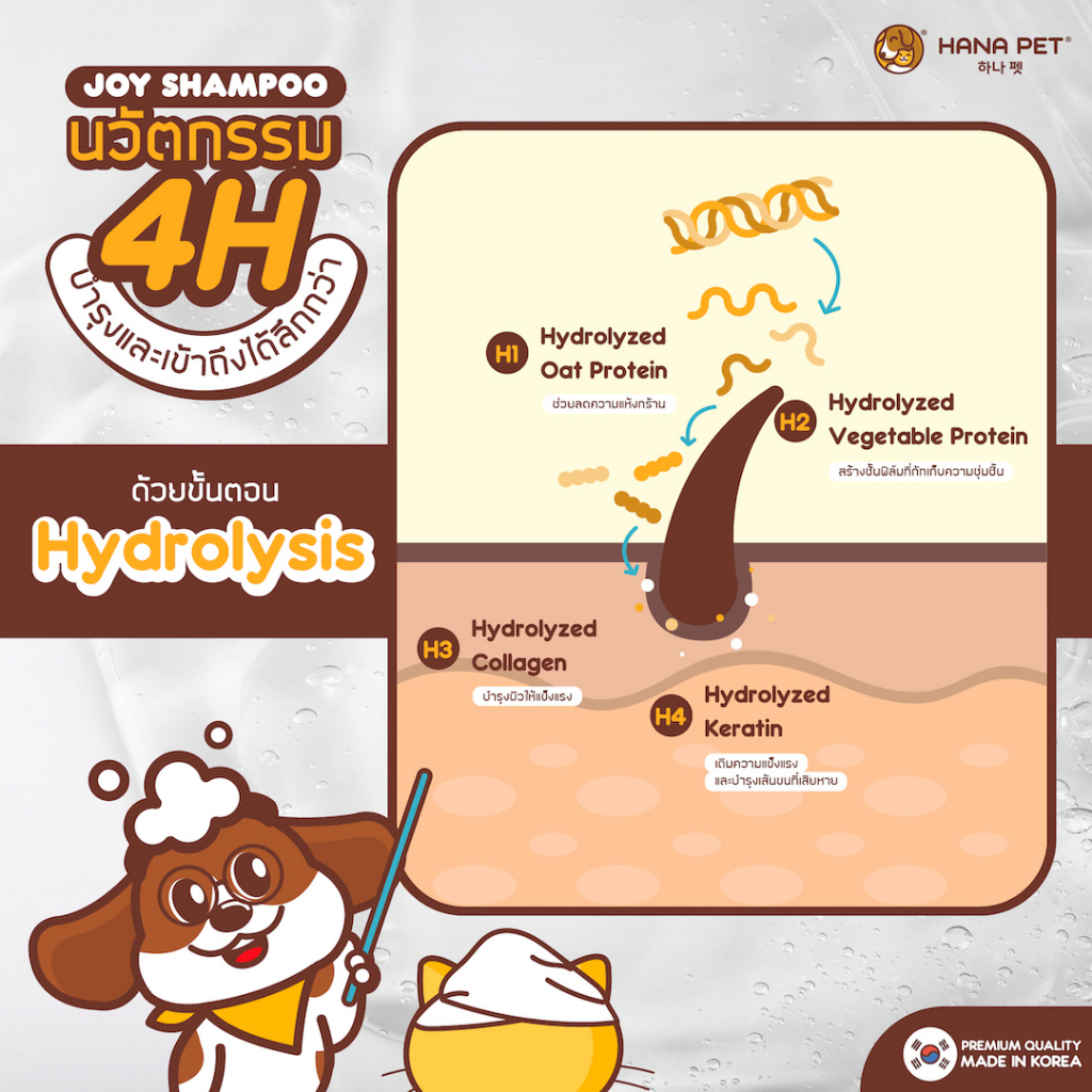 ผสมสารสกัดสมุนไพร / Oatmeal / ว่านหางจระเข้ และ Pro-Vitamin B5 พร้อมกลิ่นชินนาม่อนอ่อนๆ สูตรเฉพาะของฮานะเพ็ท จากประเทศเกาหลี