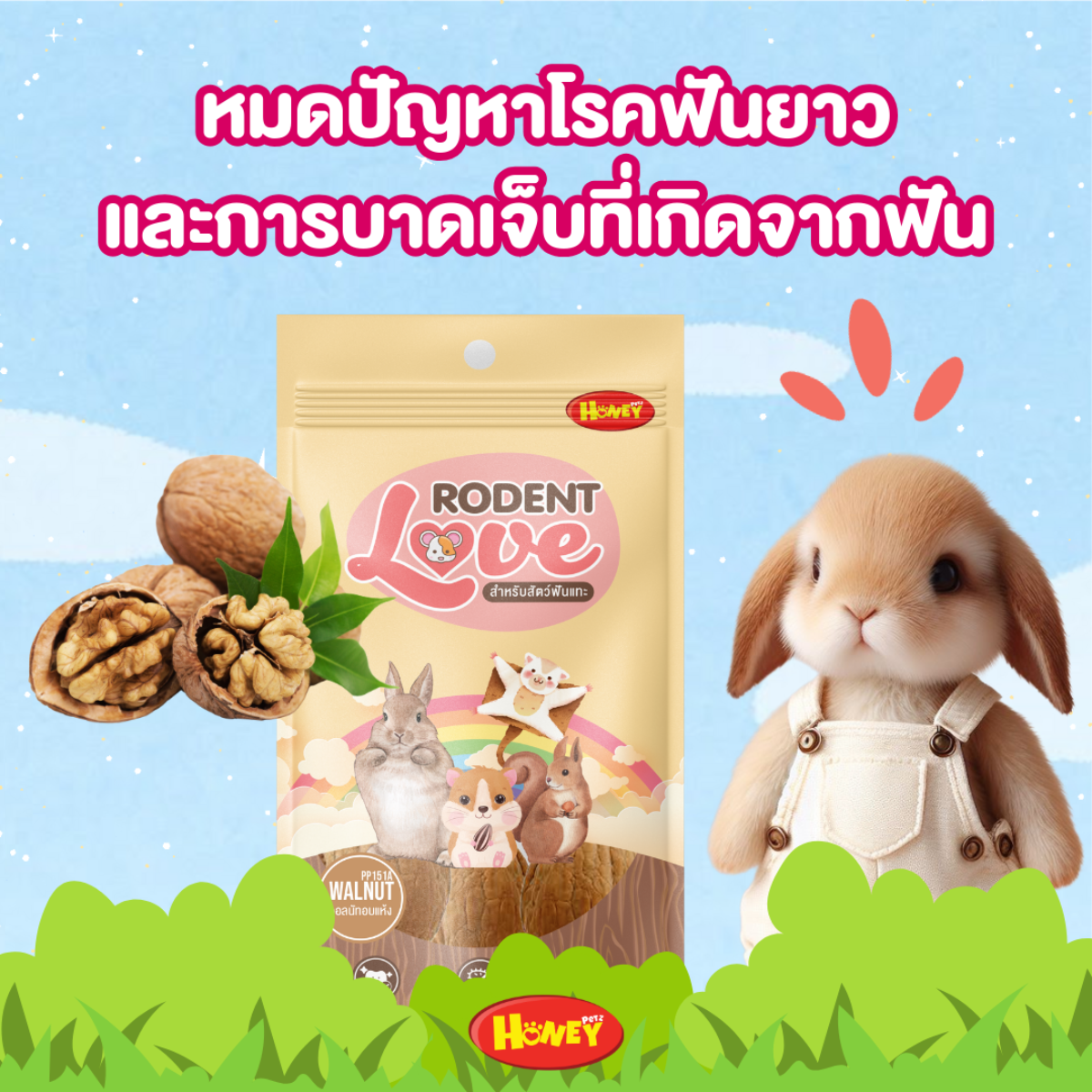 Honey Petz Roden Love – ขนมลับฟันสำหรับสัตว์เล็ก วอลนัท