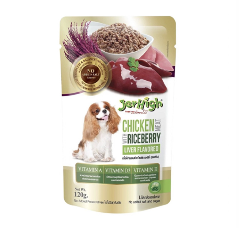 JerHigh Pouch Chicken Meat Mixed with Riceberry Rice Liver Flavor – เนื้อไก่ผสมข้าวไรซ์เบอร์รี่ รสตับ 120g