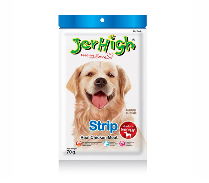 Jerhigh Stick Strip Chicken Flavour – ขนมอัดแท่งสุนัข รสไก่หั่นเส้น 70g