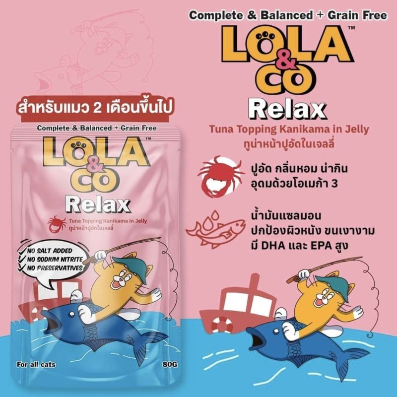 Lola&Co Relax Tuna with Crab Sticks in Jelly – โลล่าแอนด์โค อาหารเปียกแมว รสทูน่าหน้าปูอัดในเจลลี่ 80g