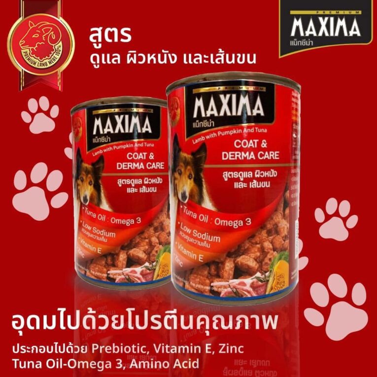 Maxima Healthy Coat & Derma Care Lamb with Pumpkin and Tuna – อาหารสุนัขกระป๋อง สูตรดูแลผิวหนังและเส้นขน รสเนื้อแกะ ฟักทองและทูน่า 380g