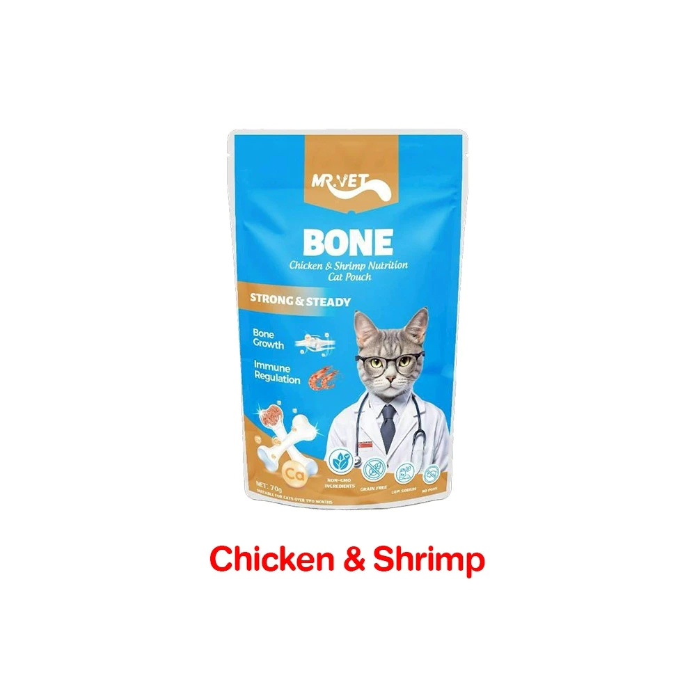Mr.Vet Cat Food Pouch Bone Strong & Steady – อาหารแมวเปียก รสไก่ผสมกุ้ง บำรุงกระดูก 70g